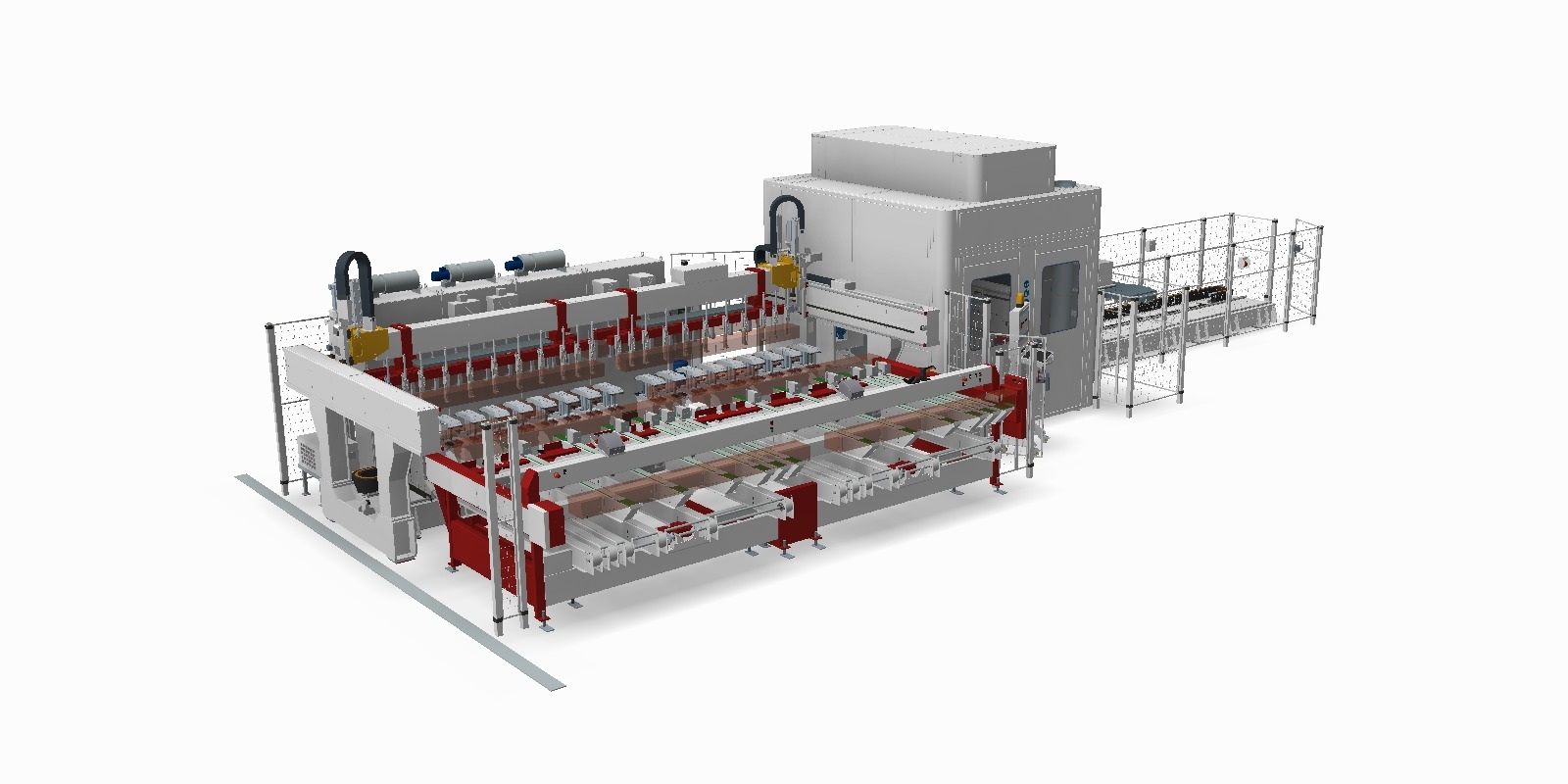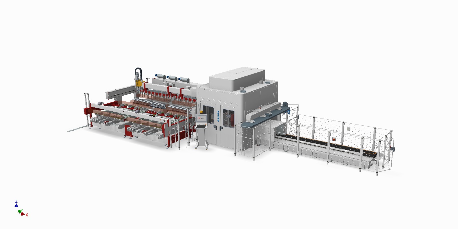 Całe urządzenie zabezpieczone jest szczelną kabiną zapewniającą komfort pracy (niski hałas, bezpieczeństwo, ograniczenie emisji pyłów produkcyjnych).